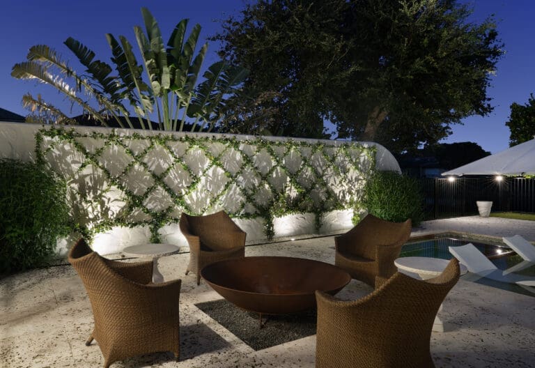 ● MR16 Lamps: Provided targeted uplighting for palms and Callophyllum trees, producing crisp beam spreads with excellent control and minimal spill.